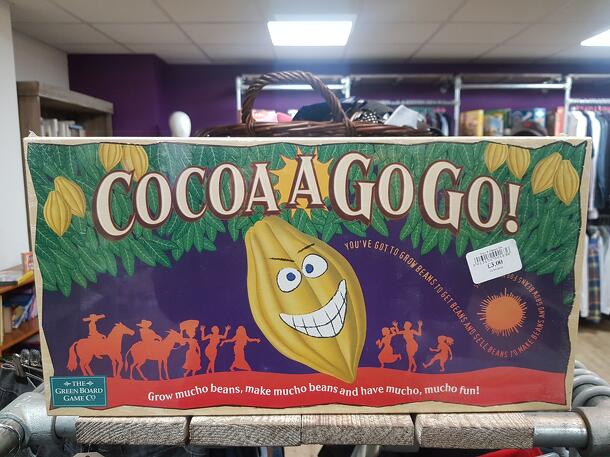The object of the game is to earn the title of Cocoa-a-Gogo,the premier chocolate bean producer in the world. There are two stages to the game. The first stage involves traveling around the outside track on the board collecting six cards ,resources needed to build your cacao plantation. In the second stage, it takes 20 beans currency to buy the way in, and...