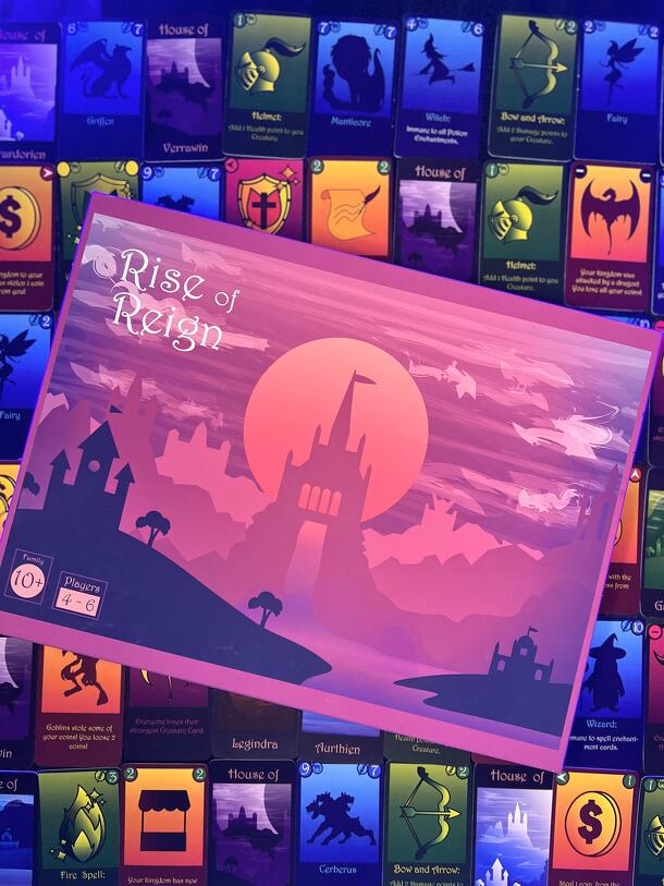Rise of Reign is a family-friendly strategy board game for 4–6 players, set in a magical realm where the king has fallen—and the empire is up for grabs. In this battle royale-style game, players lead their own kingdoms and face off by summoning powerful creatures, empowering them with enchantments, or weakening their opponents’ forces. Players must manage...