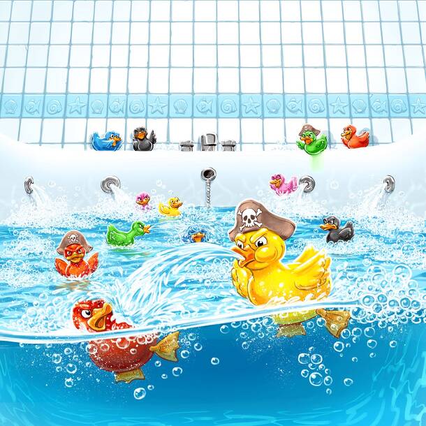 When humans aren’t looking, bathtubs become battlegrounds. You are the Captain of a rubber ducky fleet, sailing across the treacherous Tub waters. Collect soap bubbles to power up your duckies while hunting rivals. Up to six players battle in the Tub to become Top Ducky. May the best Captain win! Each player gets three duckies that swim around the Tub...