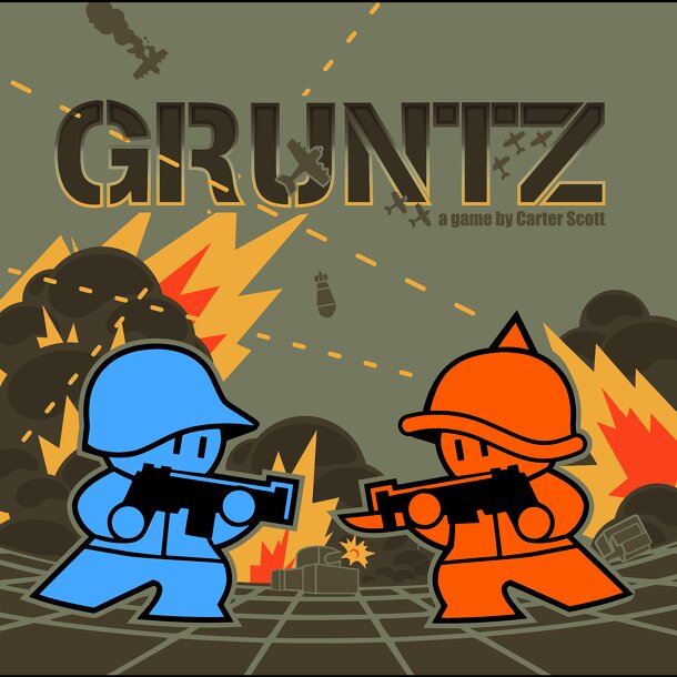 Gruntz is a head-to-head, grid-based army battler featuring cute wooden meeples that can be modified via embedded magnets. It’s easy to learn (5-10 mins) and quick to play (10-20 mins). Players must use infantry, moddable vehicles, and aircraft to wrest control of central victory locations. Each unit type has its own rules for moving and attacking....