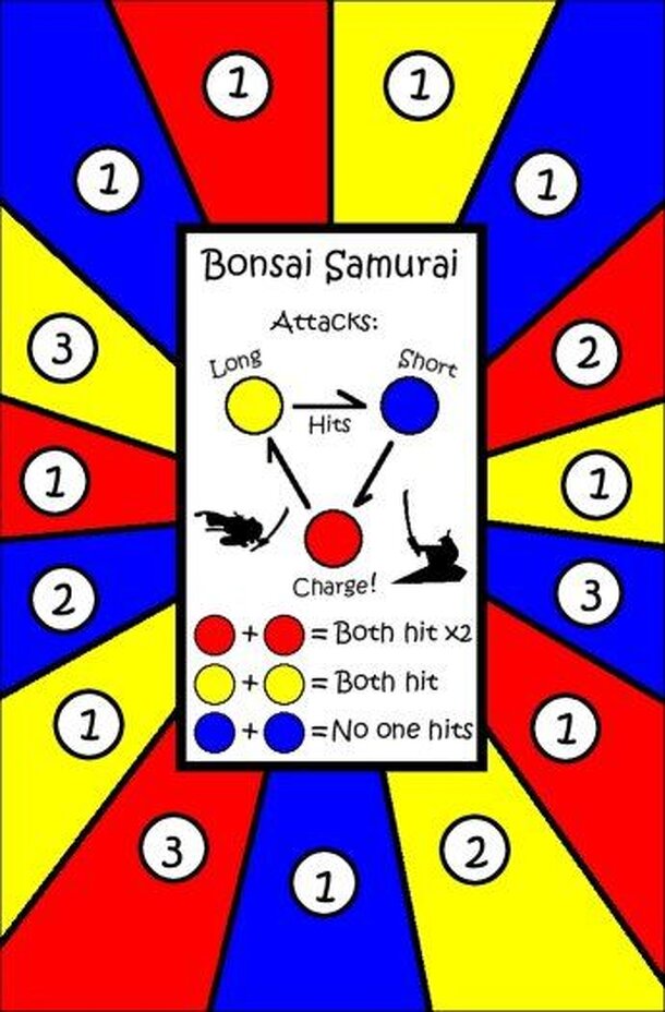 Bonsai Samurai is a nano-game of a duel between two samurai. The game consists of a single card which serves as a somewhat chaotic spinner. The spin determines the players' options in a weighted rock/paper/scissors-style contest. Ties resolve differently depending on what was chosen, doing double or normal damage to both sides, or no damage. The game is...