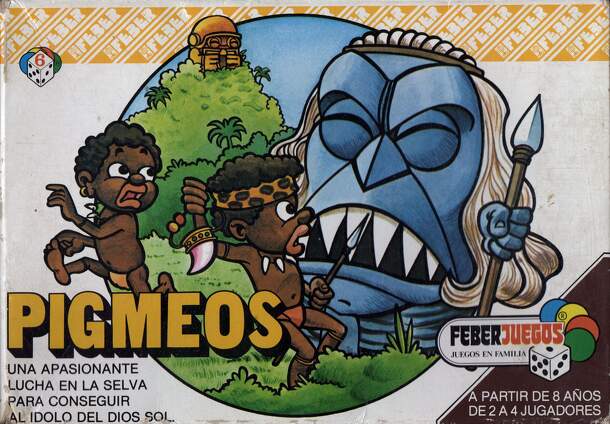Pigmeos (Pygmies) is an Spanish boardgame for kids which was originally published in the early 80s. The game is simply roll and move. Each player begins his journey at one edge of the board and try to arrive first to the center, where he should uncover a hidden idol under a tile. When he gets it he must return home. During the journey you can get some...