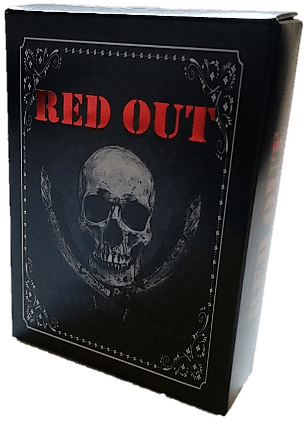 Red Out is a rock-paper-scissors like game where each player has only five cards: black, white, black skull, white skull, and red skull. The red skull beats the other skulls. The skulls beat the same color without a skull. Any other combination is a draw. Players reveal cards at the same time, putting aside any cards in a drawn match, until someone wins....