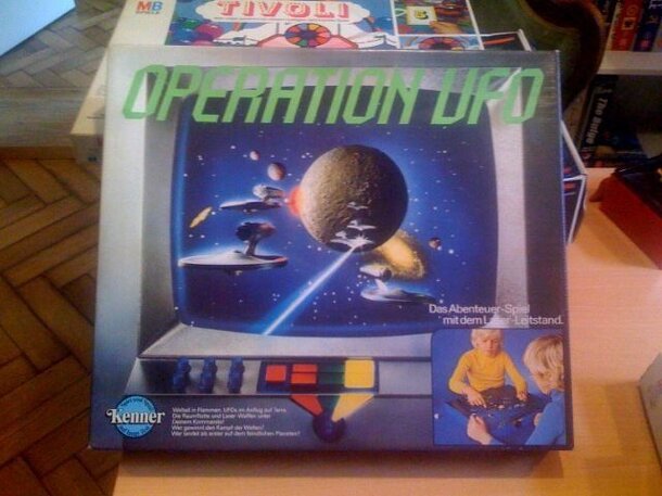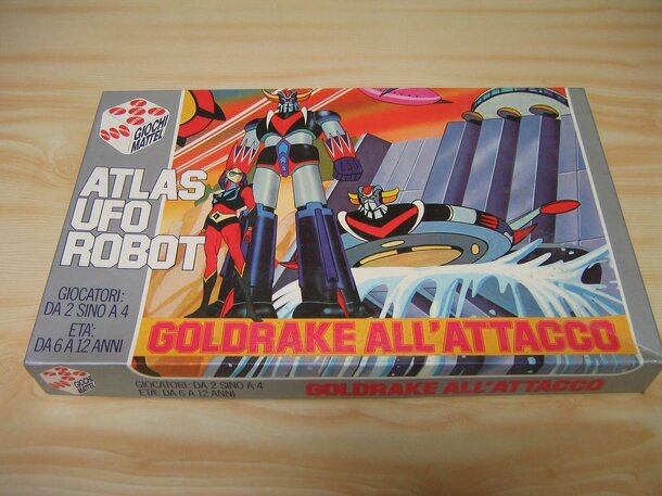 Children game from Mattel based on the popular giant robot Grendizer (Goldrake in Italy). Players race against each other trying to defeat the enemy robot and the final spaceship. The movement is driven by a classic spinner and combat is resolved by cards with Rock-Paper-Scissors mechanic. Contents: 1 Map board 1 Spinner 4 Plastic counters 6 Enemy robot...