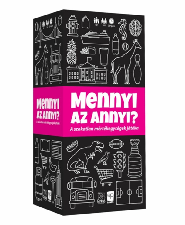 A szokatlan mértékegységek játéka Zsiráf Danny DeVitóban? Stoptábla bohóchalban? Itt minden lehetséges! A Mennyi az annyi? egy eszelős partijáték szokatlan összehasonlításokkal és fergeteges tippekkel. Néhány ember tényleg bármit használ, csak rendes mértékegységeket ne kelljen... Tippeljétek meg, valami mekkora – persze más dolgokkal mérve –, és vessétek...