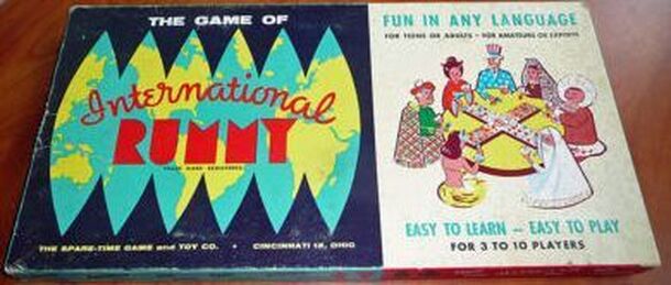 Not Rummy at all. This game owes more to the British game of Newmarket than it does to Rummy. The board is interesting, as it opens out to form a cross shape and folds back after play so that it fits into the box. Players get chips to bet with. They are betting on which card they will play last when they use up all the cards in their hand. The first to do...