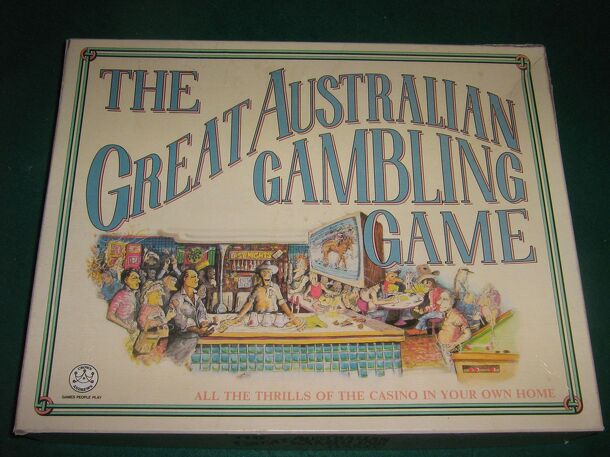 A roll and move gambling game, where dice simulate different forms of gambling, such as horse racing, slot machines roulette, craps, or the great Australia two up, amongst others. From the box: Here at last is the Great Australian Gambling Game, the game that lets you have a flutter without the pain of losing real money. You pick the odds, you choose how...