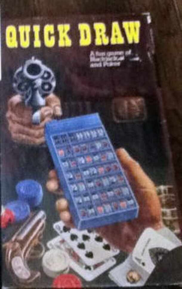 An unusual idea, a dice and cards game that has no dice or cards. All the required options are built into the plastic box. You 'roll' the in-built dice and that will result in you 'drawing' cards, which are displayed in the many 'windows', so you know which cards you have. Using this strange contraption, the publisher says you can play all sorts of card...