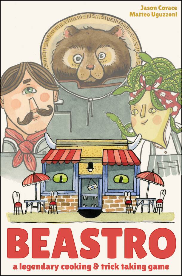 Welcome to Beastro, where mythical beast chefs compete to make the best dishes! Beastro is a team-based trick-taking game with hidden roles where you have to figure out who is in your team with and outsmart the others, collecting as many tricks as possible for your team. Each round you: (1) wager to become the Head Chef and select your Secret Chef...