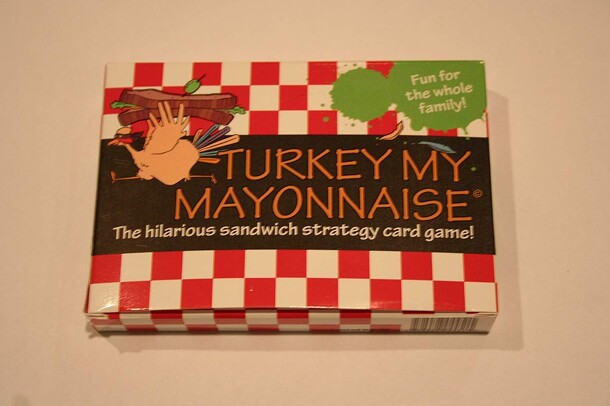 Have you ever built your dream sandwich? Imagine doing that and having a great card game too! Introducing Turkey My Mayonnaise, the hottest new card game on the market! The object is simple. Be the first to complete sandwich recipes... any way you can. See a piece of cheese on someone's sandwich you like? Take it with a "Steal" card. Pepperocinis in the...
