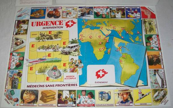 The goal is to be the first to succeed three humanitarian missions in 3 different countries. The board represents two circuits: an external circuit to collect the necessities of the mission, and an internal loop to achieve the mission. In each round, the player rolls the dice and advance in the direction he wants and if his pawn lands on a square of an...