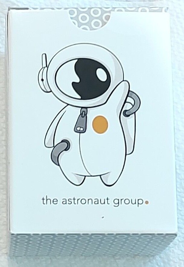 In this rummy variant, players are astronaut recruiters trying to gather groups of similar astronauts for NASA. There are 10 sets of 12 astronauts represented by a unique color and symbol, each with a different theme. The cards are individually illustrated with the astronauts represented in a whimsical fashion (as the astronauts are also arts and crafts...