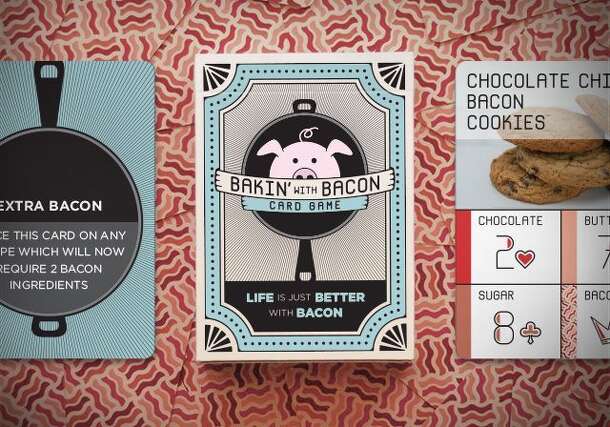 The Basics Bakin' with Bacon is a card game for 2-4 players consisting of 2 decks of cards: The Bakin' with Bacon game deck and Bacon Playing Cards (a standard deck bacon-themed deck of 52 cards + 2 jokers + 2 extra cards). The game deck includes recipe cards, action cards, wild cards, and instruction cards. Each recipe is made up of 4 ingredients...
