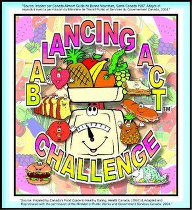 Balancing Act Challenge is based on the Canadian government's Canada's Food Guide To Healthy Eating, which organizes nutritional needs into four food groups: grain products, milk products, vegetables & fruit, and meat & meat alternatives. The object of the game is to be the first player to collect the required number of each food group's Serving Cards....