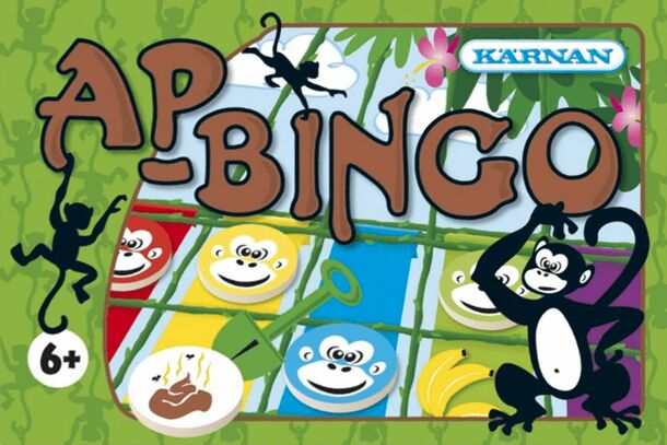 Ap-Bingo is a bingo game with ape theme. The game plays as most bingo games, but also having some twists. Each player has a bingo card, and the chips is mixed in the box. The chips can have picture of four different kind: ape, banana, gorilla poo, and a shovel. The goal is to get five apes in a row or column. The columns have different colors that must...