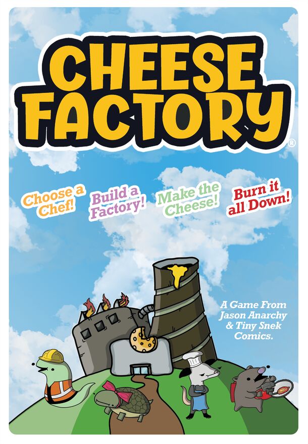 Choose a Chef (each with their own special ability, build cheese machines, collect ingredients to make the cheese and burn down your competitors factories with cheese fires! Manage your hand of ingredients and build the most effective cheese factory to be the first player to make 20 points worth of cheese. Another fun Jason Anarchy Games and Tiny Snek...