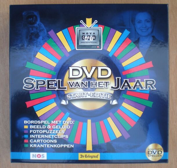 DVD Spel van het Jaar (translation: DVD Game of the year) is a Dutch quizz boardgame. The game is published by Nova Carta BV in cooperation with the Dutch state television (NOS) ad a Dutch newspaper (De Telegraaf). The goal of the game is to collect five different ‘DVD-chips’ (blue, green, purple, red and yellow), winner is the player who is the first to...