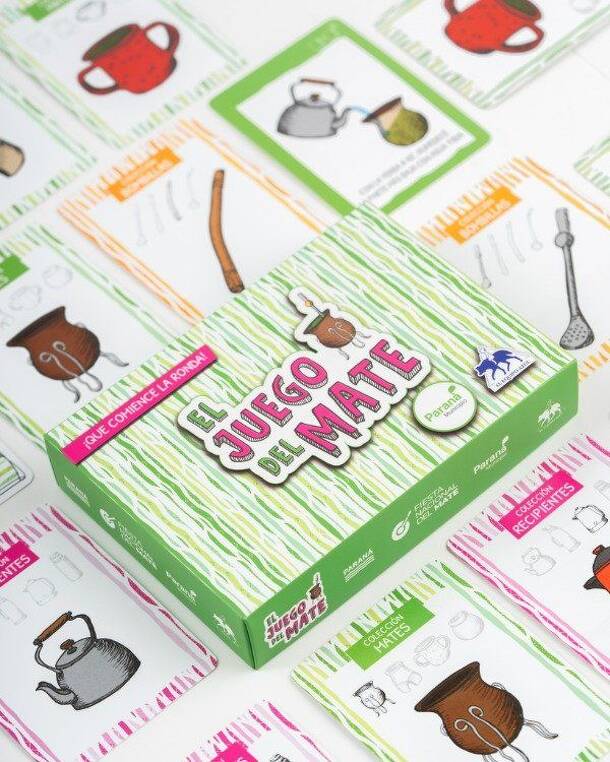 Build collections of mates, bombillas, and thermoses and become the best cebador! El Juego del Mate is the official game of the National Mate Festival. It consists of 46 cards representing elements of the mate world, such as bombillas, mates, and kettles. It also has five jokers whose illustrations refer to the ways we like to drink mate, whether bitter...