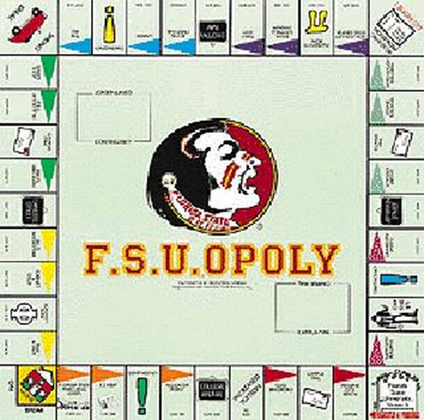 The Game Includes: Tokens: Alarm Clock, Pencil, Gym Shoe, Bicycle, Graduation Cap Board Spaces: College Avenue, Lake Bradford, Seminole Marching Band, The Phyrst, Sweet Shop, Landis, University Union Cards: Recite the Fight Song or Lose One Turn. Parking in Faculty Parking! Pay $50. Graduation Fee! Pay $25 for each Year of Credit and $100 for each Diploma....