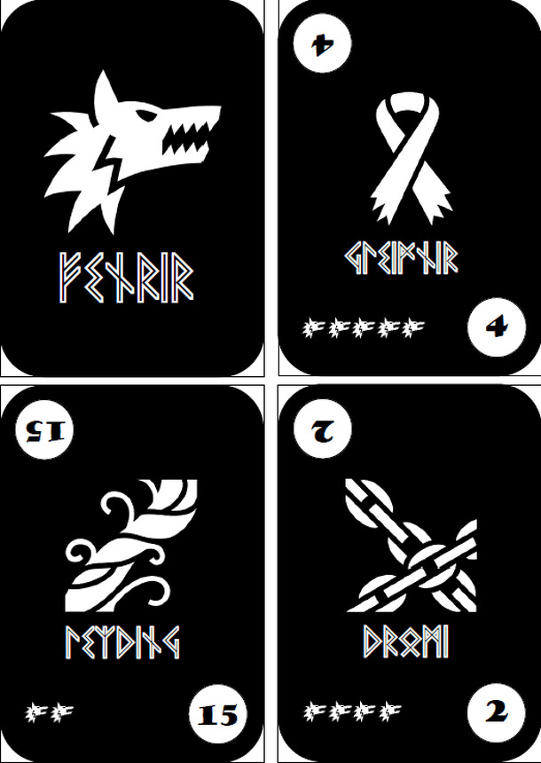 2 to 4 players 36 Fetter cards in 3 suits 1 Pawn 1 Movement track Objective Players are Norse gods trying to stop Fenrir from reaching and devouring Odin. Setup Place the pawn on the first wolf spot of the track board. 3 or 4 player game The Deal The dealer thoroughly shuffles the deck and deals out all 36 cards one at a time to each player. The player to...