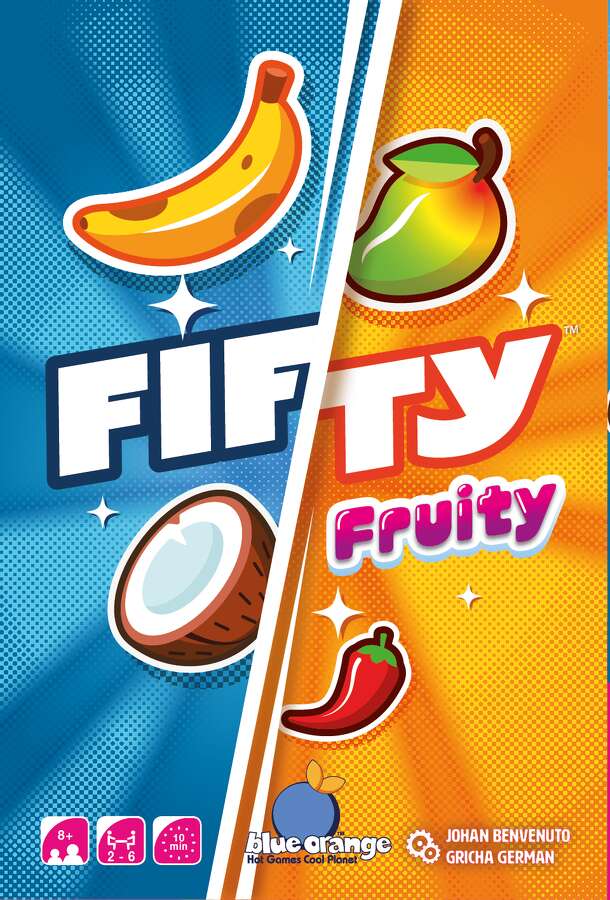 To win Fifty Fruity, you want to have the most bananas in your collection, and to get them you might have to lie. On a turn, the active player draws two cards from the deck, then shows them to another player, who either truthfully says what's on both cards (but not which is which) or lies about one card while saying the truth about the other. The active...