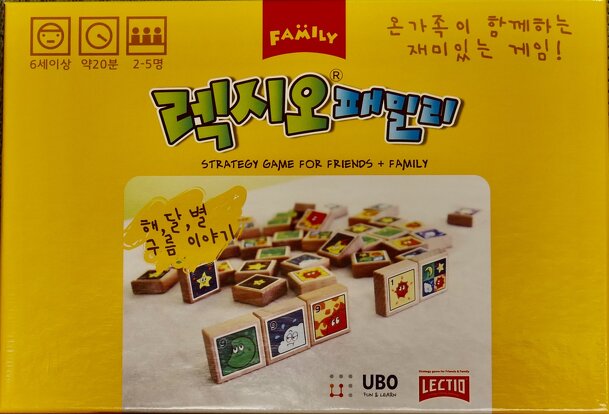 Korean feat about election. The 36 pieces of wooden token with sun, Star, moon and cloud and each sign with the numbers from 1 to 9 will be shuffeled and evenly spread to all players. In your turn you can play combinations of 2-3 tokens with different numbers in a row (street) or the same numbers with different signs (twin/triple) in front of you. The next...