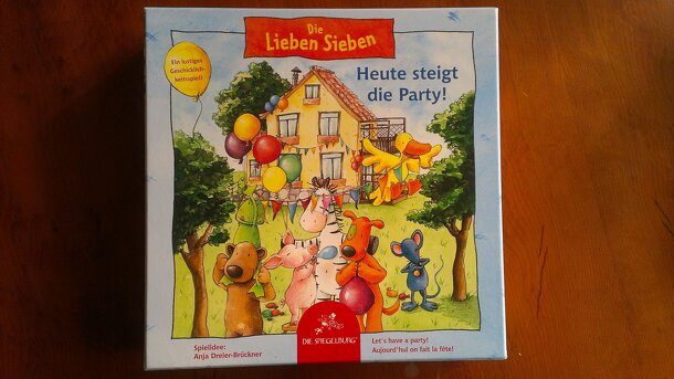 Childrens dexterity game. From the box: The Friendly Seven want to celebrate a big party in the mansion Siebenklein. They cleaned up the house already, only the balloon decoration is missing. Four of the friendly Seven blow up the ballons and the other three hang them up. Would you like to help the Friendly Seven to decorate the house? A game ofskills to...