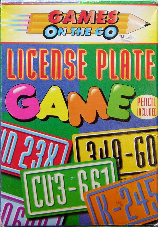 License Plate Game Games On The Go Ages 4 and up. On their cards, players write letters from the license plates of passing cars. As the cards fill up, players score points for every three letter word that they create. The strategy is in deciding where on the card to put your letters to maximize your ability to create words. (letters can not be moved once...