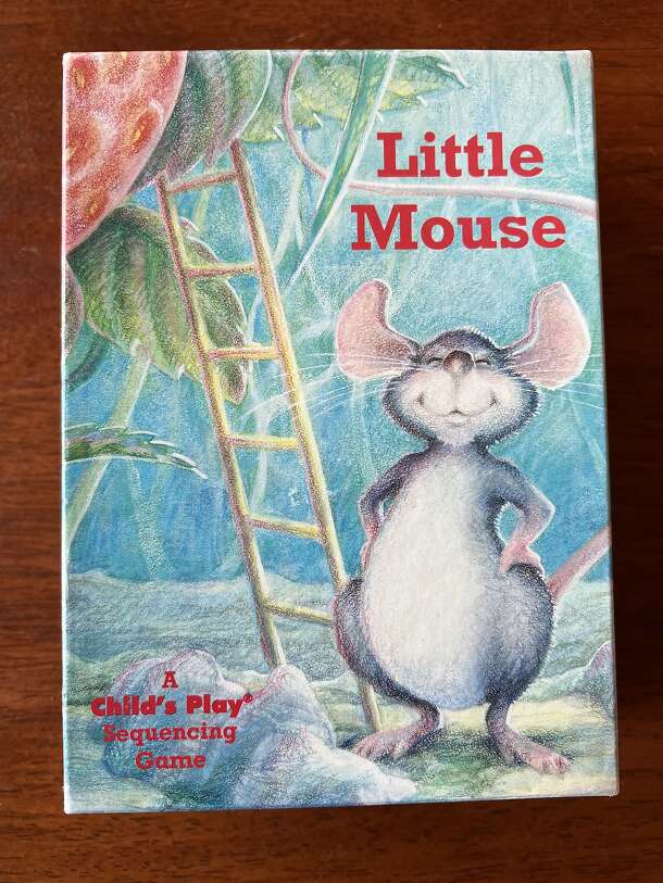 "Little Mouse" is a children's sequencing game which uses the imagery and phrasing from the book, "The Little Mouse, the Red Ripe Strawberry, and the Big Hungry Bear" by Audrey and Don Wood. The game contains 48 thick cards with 4 each of the 12 different phrases to play any of six different games. [paraphrased rules] 1. Solo Sequencing Solitary sequencing...