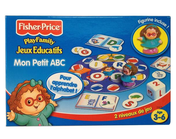 Alphabet game with two levels of play, featuring Marie to help. The mini game board is assembled and all the letter tokens are sorted into 4 matching coloured piles. Each player is dealt an even number of books. Players take it in turns to roll the die and move Marie around the track. Pick a coloured tile matching the space and call it out. In the first...