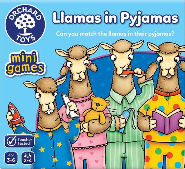 In Llamas in Pyjamas, players take turns to take a card from the pile and try to match llama pyjama tops with pyjama bottoms. Collect more pyjama bottoms, match a pyjama top to existing pyjama bottoms, and complete as many llamas as possible before all of the “bedtime scene” cards are revealed. Watch out for those “a-llama clock” cards which can send half...