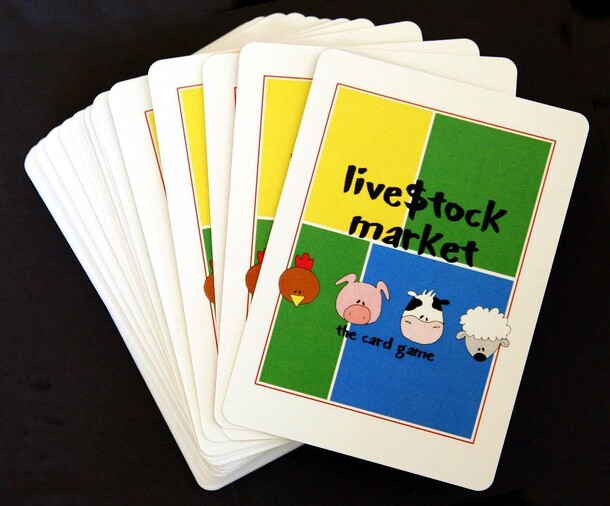 Which farmer can successfully buy the most cows, pigs, sheep, and chickens? Players will need smart money management, strategy, and a little luck to score big and bring home the bacon. During the game, players can earn points by having the most animals of the type(s) being scored. At the end of the game, additional points are awarded for sets of animals....
