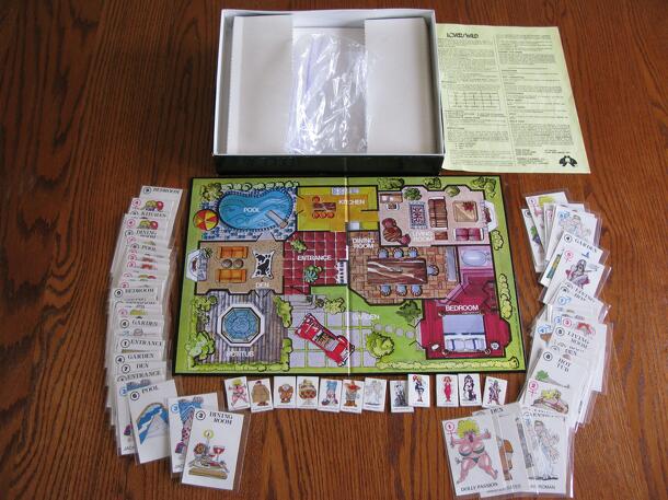 From the introduction to the rules: Lovers Wild is a fun spoof of sexual morality today. As a player you have been invited to a wild party along with twelve naughty but nice characters. The object of play is for you to score as many "seductions" as possible. The board is set up as a modest movie star type estate with various rooms. Bedroom, den, kitchen...