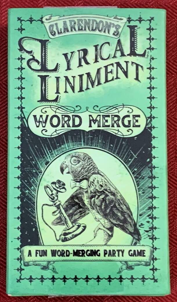 Lyrical Liniment has 80 medicine-bottle-shaped cards, each with one or two letters, plus two wild cards. To play a round, the dealer turns up the cards one at a time onto the table. Once any player can make a word using at least 3 cards, they call out the word, and if it's judged a valid word, they gather and keep the cards that make it up. If not valid...