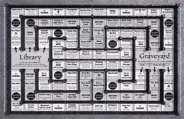You and your opponents represent powerful wizards battling to complete their collections of Magic(tm) cards. You will travel through the Real World, the Internet, and the Game, trading, auctioning, and fishing for cards, and playing for Ante with other powerful wizards, who by a surprising coincidence need the exact same ten cards you do. The first player...