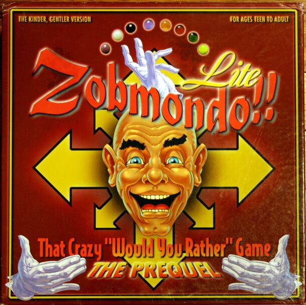 From the back of the box... More of the same outrageous, mind-blowing content that made the original Would You Rather...? so successful...only now it's not just for adults. Find out what someone is really like by discussing the imaginary hypotheticals of Zobmondo Lite. Plus this version has all new questions. Object of the game: Above all, to simulate...