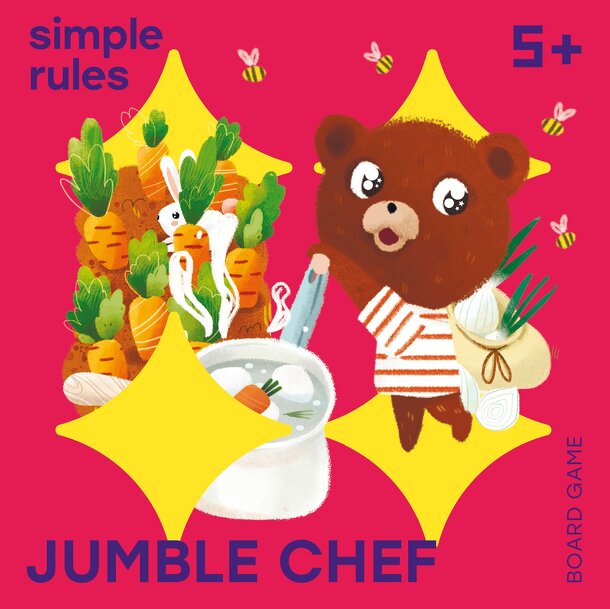 Cooperative game for little ones. Players collect ingredients to cook dinner for guest. They must do it in time by his arrival to win. For one game players choose 3 dishes they will cook. There are 20 fields with ingredients in enviroment on one side and ready dish on another side in the game. Players put 3 fields into the box ingredients side up and start...