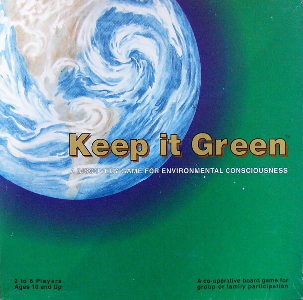 A discovery game for environmental consciousness: Keep it Green is a co-operative game for 2-6 players, Ages 10 and up. Each player has three journeys to complete. Earth and all the players win if Earth is still green and living when all journeys are completed. Earth and all players lose if Earth has become dead and grey before all journeys are completed....