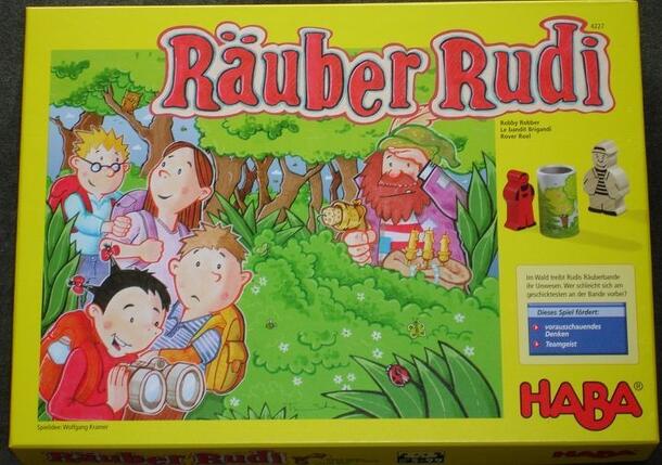 A co-operative game for children from 5 years up. The "Robber Hotzenplotz" from the well known book by Otfried Preußler, has stolen pieces from the grandmother`s cake and trying to get them safe in his hiding place. The players try to catch him and the pieces first. There are four figures walking along square fields, in which the board (looking like a...