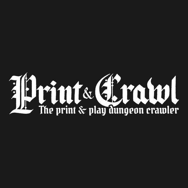 Print & Crawl is a co-operative print-and-play fantasy dungeon crawler for 1–4 players. Players guide heroes with distinct roles through dungeon maps using included paper standees or their own miniatures. They fight monsters on a square grid, deal with traps and room conditions, and find new equipment. Heroes take turns moving, attacking, and using skills...