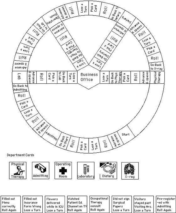Rules Equipment Road to Recovery contains one playing board, one die, 36 cards, six player tokens and 30 department cards. Object of the Game Players must collect 4 department cards(3 of which must be Admitting, Dietary and Operating Room) by having landed in each of the department spaces. The play then proceeds to the Business Office for check out. Start...