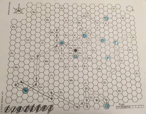 From the box: A team of space explorers are on a common, dangerous mission. You set up the mission. As in real space. each person has an important part to fulfill and must return safely to Earth. Each must use the craft, equipment & fuel wisely. Keep an alert mind on the controls. Lives are at stake. We have to look after one another, performing daring...