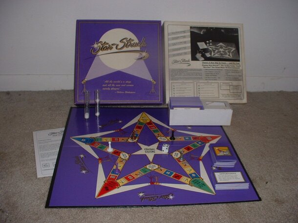 An acting game, in which you play a star in 1 of 5 entertainment categories (commercials, TV, music, theater, and movies). Your teammates have 2 minutes to guess your identity and situation. You can talk, sing, dance, or use an actor's famous lines to get your identity across. The winning team is the first to successfully audition around the board in all 5...