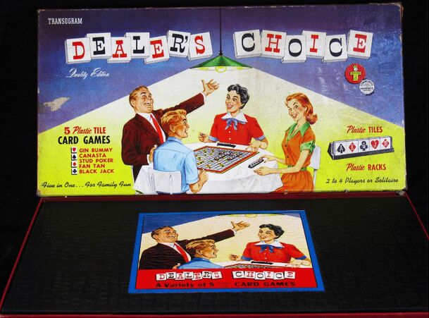 Briefly: Scrabble with poker hands. Deal Me In is a board game in which players collect tiles (which represent playing cards) and attempt to lay them on the board so as they form poker hands. The higher the hand, the greater the score. The poker hands interlock in the same way as the words on a scrabble board, so it`s possible to score for more than one...