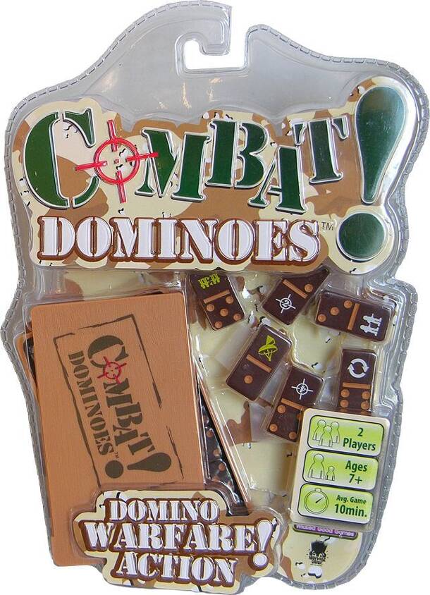 Combat Dominoes is a battle against the enemy's dominating dominoes in order to build a base and gain intelligence. Infantry and special-ops dominoes are used in the fight to defeat the enemy in the domino warfare action. Game play is similar to traditional domino games like All-Fives. The player with the highest double places it on the table facing...