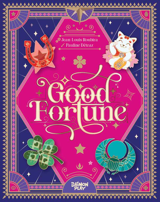 In this subtle duel, anticipate your opponent's moves, connect the right symbols, and collect lucky charms to increase your chances of winning! The duelists have 9 tiles each. Each turn, they will play one tile each to try to connect it to the central tiles in order to win and collect charms that will earn them points at the end of the game. Be careful!...
