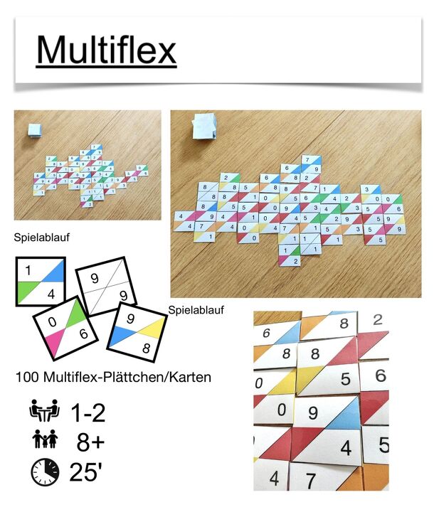 A brainburner game with simple rules, but a greater challenge. As a 2-person battle always a challenge. Multiflex has a high replay value, a new game mechanic, driven by 100 Multiflex tiles/cards Who manages to generate the most points or beat their own high score? Only those who combine well and keep an overview can make the right decision and ultimately...