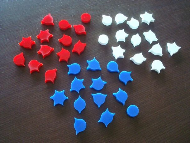 XATS is a game that uses the spare parts generated when cutting the spiked holes of the tiles for the game Stax (Cameron Browne - 2011). Néstor decided to ‘recycle’ these tiles by designing a game for them. XATS is a boardless game where 2 or 3 players create and destroy towers while trying to match the number of tiles on their reserve with the number of...