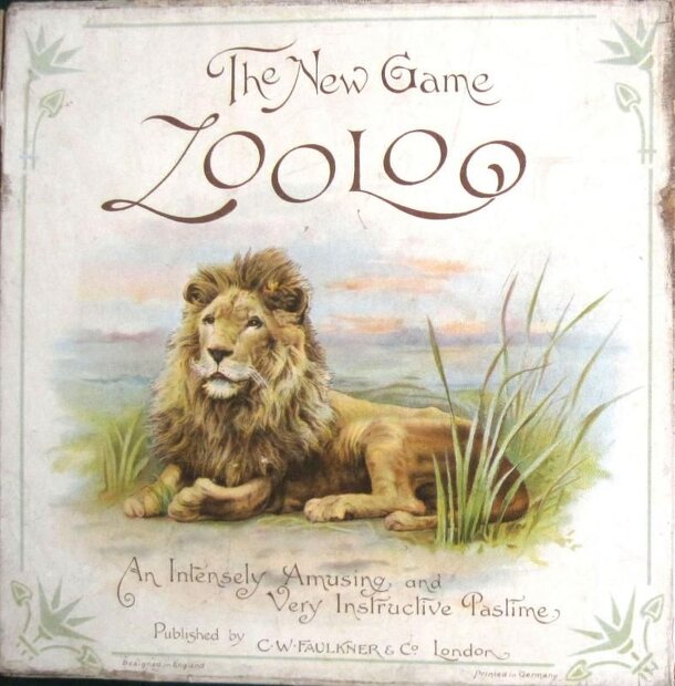 C.W. Faulkner published numerous sectional card based board games around the turn of the century. Zooloo has uniquely shaped cards that form an animal themed globe. Play starts by shuffling the smaller card deck and taking turns playing cards around the circular disc. All players start with a set number of counters. Players try to play the best card they...