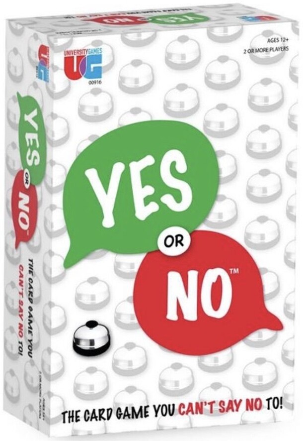 Yes or No is the card game you can't say no to! Get ready for a fast and furious game of questions where the only rule is you can't say YES or NO! Take a card and begin asking questions - if your opponent says YES or NO, ding the bell and keep the card. If your opponent makes it through without saying YES or NO, they keep the card. Be the player with the...